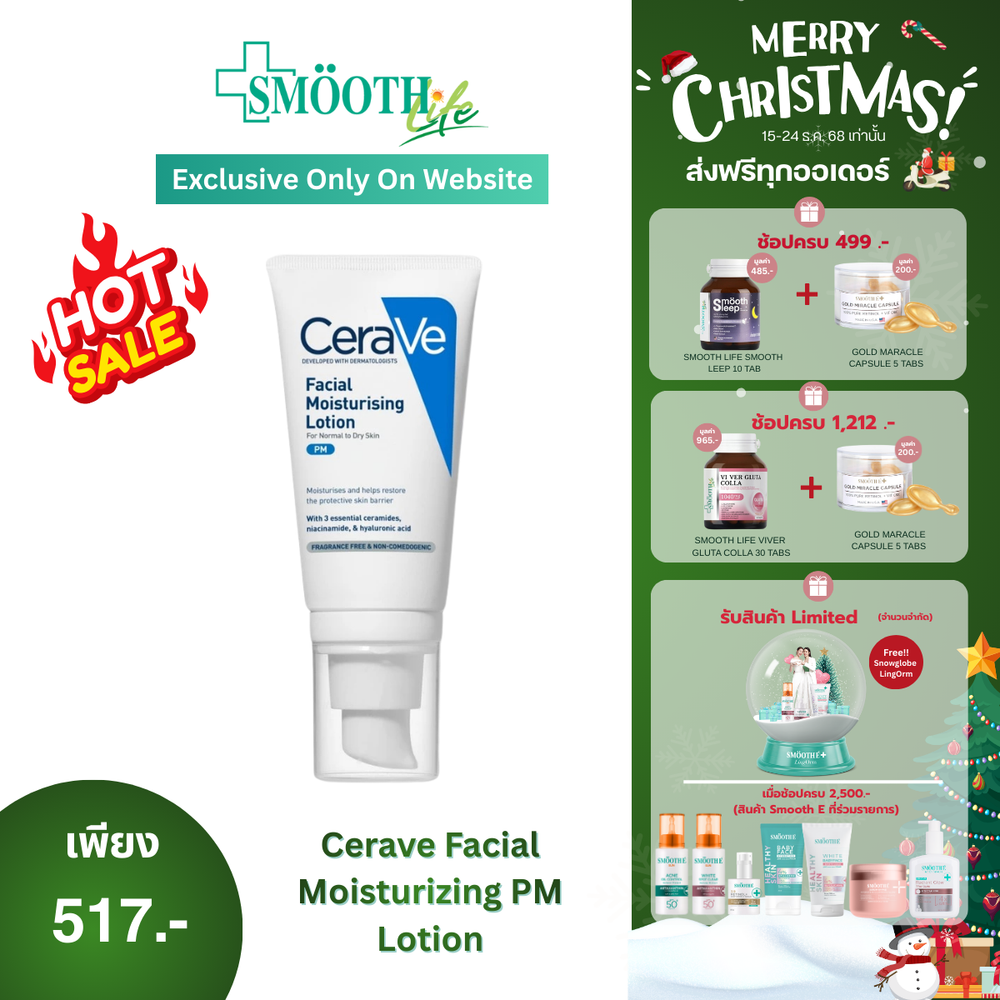 Cerave Facial Moisturizing PM Lotion 52 ml. โลชั่นบำรุงผิวหน้า สำหรับผิวธรรมดา