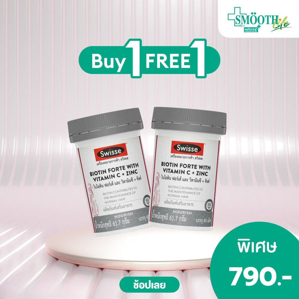 สวิสเซ ไบโอติน ฟอร์เต้ และวิตามินซี + ซิงค์ บรรจุ 60 เม็ด