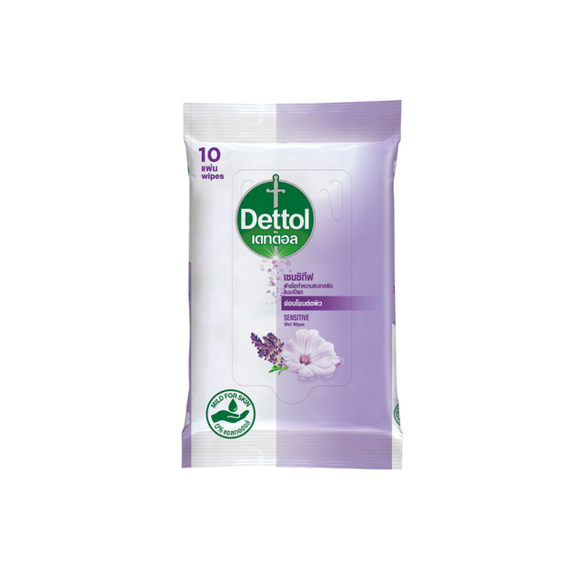 DETTOL SENSITIVE WET WIPES ทิชชู่เปียกเดทตอล ทิชชู่เปียก สูตรเซนซิทีฟ 10 แผ่น