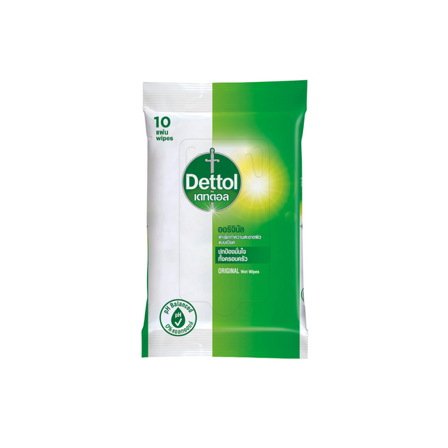 DETTOL WET WIPE แอนตี้แบคทีเรีย ผ้าเช็ดทำความสะอาดผิวแบบเปียก 10 แผ่น