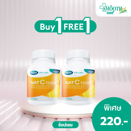Mega NAT C 1000 MG แนท ซี 1000 ผลิตภัณฑ์เสริมอาหาร 15 เม็ด