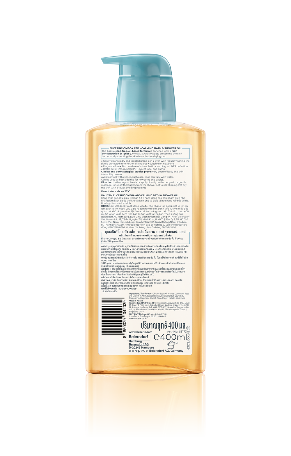 Eucerin OMEGA ATO-CALMING BATH & SHOWER OIL 400 ML ยูเซอริน โอเมก้า บาธ แอนด์ ชาวเวอร์ ออยล์ ออยล์อาบน้ำสูตรอ่อนโยน